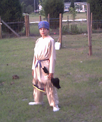 | Trying out the Eagle Dance regalia | Waiting to dance at the Overhill Indian Nation's gathering |