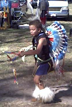 My son Jonathan and I have been making our own regalia for a while now. He is young, and not long on patience, and has not spent the hours at it which I have. He did help make a beaded choker which he later gifted to someone.