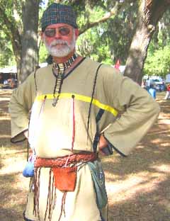 A Cherokee-style turban. The cloth style was chosen to signify my Scotch-Irish heritage.