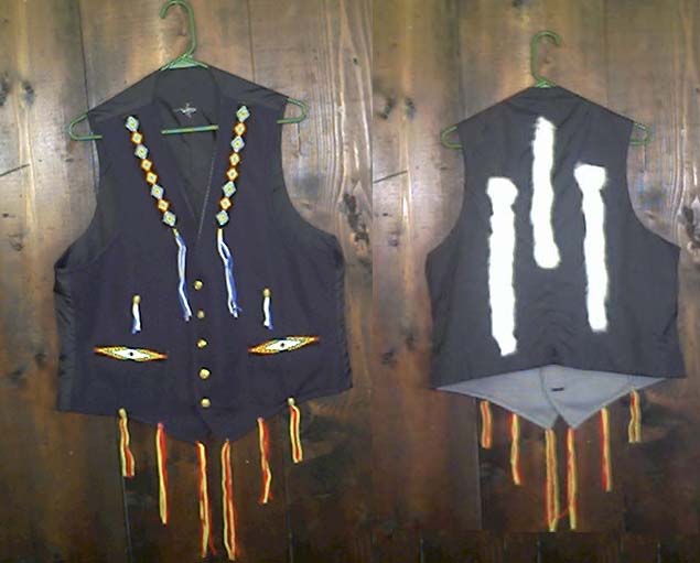 The vest. Bead work on front, and fur strips on back