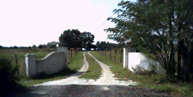 The house is way up by those trees.