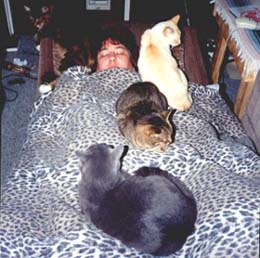 Of course, after the day's visits and paperwork, it's break time. (It has been scientifically proven that cats prefer human mattresses.)